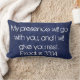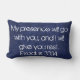 Ce coussin est fait sur la texture bleue avec le vers de bible "que ma présence sera assortie à vous, et je vous donnerai le repos. 33:14 d'exode"