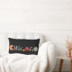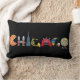 Une peinture originale par Anne Ormsby orne ce coussin avec du charme avec des images et des scènes de Chicago faisant les lettres.
