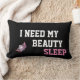 Coussin de style Lumbar montré en noir/rose avec une impression litho d'une couronne de concours et dit I Need My Beauty Sleep. Customisez cet objet ou achetez-le tel quel.