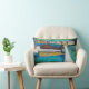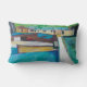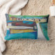 Ce coussin brillamment coloré complimentera n'importe quelle pièce. L'image est un paysage abstrait, aux nuances des neutres, des bleus, verts. Imaginez le dock et la maison tandis que vous êtes dans un flottement au milieu du lac un jour chaud d'été.