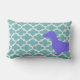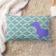 Coussin de bois unique avec la moitié de la silhouette d'un dachshund violet à l'avant et l'autre moitié à l'arrière.