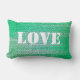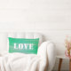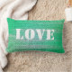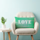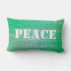 Ajoutez votre propre texte à ce coussin en mosaïque verte. En ce moment, il prend deux formes... Fait un grand cadeau lorsque vous ajoutez un nom. On peut lire : Paix/Amour. ©Janet Palaggi