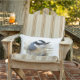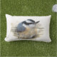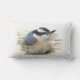 Ce coussin extérieur présente une sittelle à gorge rouge qui regarde comme il prend la charge ! Il est un oiseau très petit avec un sein coloré par rouille, un arrière bleu-gris et une rayure d'oeil au beurre noir. Sa tête et bec sont très grands proportionnellement à son corps.