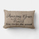 Coussin lombaire avec un arrière - plan de conception de toile de jute et dans le noir les mots "grâce extraordinaire, combien doux le bruit". Également dans la conception est un contour des fleurs de gloire de matin.