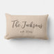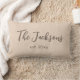Ce coussin lombaire personnalisé fait un merveilleux cadeau mariage! La coussin est faite avec une belle texture en jute imprimé, ajoutant une ambiance rustique de ferme à n'importe quel espace. L'avant du coussin présente un nom de famille personnalisé dans un grand script cursif audacieux, ce qui en fait une pièce vraiment unique. Le nom est suivi de "est. year" en un petit imprimé en dessous, ajoutant une touche de sentimentalité à la conception. Les couleurs utilisées pour la coussin sont terreuses et naturelles, avec un arrière - plan crème et des lettres marron. L'ensemble est parfait pour ajouter une touche cosy à n'importe quelle chambre.