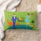 Ce Coussin Lumbar moderne du milieu du siècle ressemble à une scène d'une comédie romantique. Le style des années 60, au design minimaliste, est composé d'un joli couple de dessins animés qui passent une soirée romantique à la maison. La chambre sophistiquée est dotée d'un mur en pierre verte et d'un feu de cheminée. Le mobilier de la chambre comprend un orange, un transat avec tabouret assorti, un rouge, une horloge murale étoilée, un jaune, un luminaire Spoutnik et une table de chevet orange, qui abrite un lecteur de disque portable vert. Au sol, à côté de la table d'arrivée, on peut voir un disque vinyle sorti d'une pochette d'album kitsch. Au centre du sol vert, se trouve un grand tapis rectangulaire turquoise. Au milieu de la scène, nous avons un couple très sophistiqué. Il y a un homme suave en costume bleu royal, chemise blanche et cravate arc bleu. Le grand, sombre et beau homme regarde son joli compagnon. L'élégante femme aux cheveux raven porte une robe d'aqua bondissante. Ils portent tous un verre de martini en cristal avec une olive flottante. Bravo ! La soirée parfaite à la maison ! De l'autre côté de l'oreiller, un motif vert en pierre.