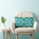 Coussin avec un design à motifs géométriques en menthe, bleu, turquoise, turquoise et vert. Vous pouvez customiser en faisant glisser, en faisant pivoter ou en mettant à l'échelle la conception ainsi qu'en ajoutant du texte si vous le souhaitez.