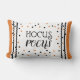 C'est un coussin d'amusement pour Halloween. Il indique l'abracadabra sur un arrière - plan blanc avec le pois noir et orange et le support noir de rick regardant l'équilibre et l'orange sur les extrémités.