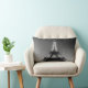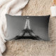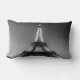 Un coussin rectangulaire avec une photographie en noir et blanc de la Tour Eiffel au coucher de soleil