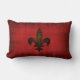 Un coussin rouge de regard de velours avec un Fleur de lis en vieil or