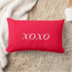 Ce coussin lombaire rouge à deux côtés a la phrase "xoxo" serrée et embrassée en lettres blanches. Idéal pour votre être aimé, celui que vous manquez, ou celui que vous aimez rappeler votre amour et votre affection.
