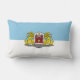 Lumbar Coussin avec design avec drapeau de Riga, capitale de la Lettonie ; drapeau blanc et bleu avec armoiries avec deux lions dorés tenant un bouclier au centre