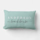 Personnalisez ce coussin turquoise doux avec votre nom de famille.