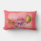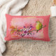 Lumbar L'oreiller est montré avec une belle floraison colorée de cerisiers et une impression finch. Texte de "Thankful" devant en rose coordonné. Couleurs : Coral-rose, vert rose et orange-or avec blanc. L'arrière - plan et le dos rose corail est de couleur solide de Coral-rose. Customisez ce coussin ou achetez tel quel.