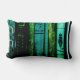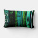 Les livres vintages fonctionnent horizontalement sur ce coussin lombaire vibrant de vert bleu et vert.