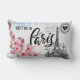 Belle et confortable coussin lombaire qui comprend la Tour Eiffel, les Fleurs de cerisier, et la phrase Rencontrez-moi à Paris avec un timbre-poste simulé qui dit "fait avec amour". Choisissez votre tissu avant de le placer dans votre panier.
