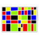 Un design abstrait géométrique à bords durs et coloré, un peu comme Mondrain peut-être, bien que différent. Idéal pour de nombreuses occasions. Peut également être customisé en ajoutant du texte ou des lettres aux formes colorées.