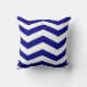 Dit bruisende nautische ontwerp heeft een rood anker op een marineblauw en wit chevron streeppatroon. De achterzijde shows alleen de chevron streeppatroon voor veelzijdigheid in hoe je het kussen weer te geven.
