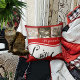 Un coussin avec 3 de vos photos de chat personnalisées (en option) sur un joli design rouge noir et blanc avec patte de chat et le coeur. Idéal pour la Saint Valentin ou pour n'importe quel amoureux des chats.