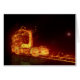 Een brandende vrachtwagen in vlammen, vuur met brandende sporen op een zwarte achtergrond - fantasie voor ventilatoren.