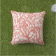 Voeg een vleugje kleur toe aan uw zomerse buitendecor, met dit levendige kleurrijke kustkussen met een patroon van verweven rode koraaltakken op een witte achtergrond.
