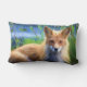 Een lumbaal kussen met een kleurrijk wildlife afbeelding van een rode vos die in groene grassen ligt. Dit schattige wezen heeft zachte vacht en zachte ogen. Afbeelding heeft een dromerig magisch gevoel.