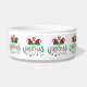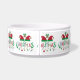 Kute red and green Santa hat Kerstmis bells kersthond of kattenvoer of waterkom.