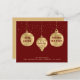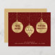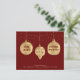 Drie met de hand getekende metallic gouden kerstversieringen laten je familie en vrienden weten dat je tijdens het vakantie bent verhuisd. Een initiaal van een monogram met jouw naam overlay plaatst uw persoonlijke of familielekens op de aankondiging. Tegen een rijke, donkere rode achtergrond, toont de voorzijde van onze budgetvakantiebewegingskaart ook een starre grens en jouw naam en adres in de zelfde kleur als het monogram initiaal. De tekst "nieuw huis" en "voor de feestdagen" maakt deel uit van het grafische ontwerp. Alle andere voorbeeldtekst op voor en achter de kaart kan gemakkelijk op de verpersoonlijking sjabloon worden herzien.