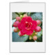 Een groetings kaart met een aantrekkelijk centrum gericht vierkant Instagram stijlfoto van een rode Kalanchoe bloem. Kleinere herhaling van het afbeelding op de achterzijde, met titel en fotograaf/kunstenaar, enz. Deze kaart kan ook worden aangepast.