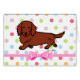 Whimsy en grappige Dog Art gemaakt door Naomi Ochiai uit Japan. Cute Dachshund cartoon design voor hondenliefhebbers die van Doxie houden!! Een schattige Red Long Hazard Doxie loopt trots. U kunt tekst en meer aanpassen! Kleurrijke polka stipachtergrond.