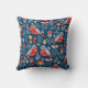 Hier is een leuke en unieke gooiende kussen met een Scandinavisch vogelontwerp. De rode en blauwe vogel worden op een heldere blauwe achtergrond geplaatst in een patroon met noordse bloemen en bladeren. Beide zijden van de kussen hebben hetzelfde kleurrijke en heldere afbeelding.