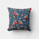 Red Nordic Bird op Blue Pattern Kussen