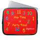 Elke keer is de Tijd van de Partij, mijn gekke klokontwerp, decoreert deze laptophoes. Het gebrek is rood, maar u kunt "aanpassen"klikken om UW EIGEN ACHTERGRONDKLEUR voor dit sleeve te KIEZEN. Het is gepersonaliseerd met witte manuscriptletters. Geweldig geschenk voor afstuderen, of voor de rug-naar-school of Kerstmis. Alle rechten voorbehouden © 2014 Alan & Marcia Socolik.