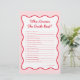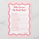 Maak uw evenement onvergetelijk met het gepersonaliseerde rode roze wie weet bruid beste Vrijgezellenfeest spel! Perfect voor valentijnen vrijgezellenfeest ideeën of een valentijnen vrijgezellenfeest thema, dit spel voegt plezier aan een kus de miss afscheidsfeest of een kersen op top vrijgezellenfeest thema. Met een rode en roze bruiloft thema, het is ideaal voor de liefde is in de lucht vrijgezellenfeest ideeën, drink in de liefde, of een drink in de liefde vrijgezellenfeest thema. Ook geweldig voor valentijnen bruiloft ideeën, een Vegas Bachelorette Party, geluk in de liefde bachelorette, of een perfecte match bachelorette thema!