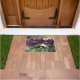 Decoratieve, welkome deurmat met een foto afbeelding van rode violette Hydrangea bloeit, algemeen bekend als Hortensia. Een mooi, bloemig ontwerp! Gebruik binnenshuis of in overdekte toegangsgebieden.