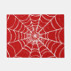Het web van een spin vormt zich in een gedurfde, bloedrood gekleurde leegte.