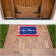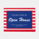 Deze patriottische rode, witte en blauwe gestreepte ontwerpdoormat zal de gast in je open huizen verwelkomen. Voeg uw bedrijfsnaam en contactinformatie toe gebruikend de makkelijk te gebruiken sjabloon. Een functionele en professionele marketingaccessoire.