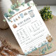 Voeg een persoonlijk en grillig tintje toe aan je baby shower met deze Reel Fun Vissen Rustic Baby shower Predictions! Perfect voor een nautisch, bosrijk of baby shower met een landthema, dit spel stelt gasten in staat om leuke details over de baby te raden en lieve wensen voor de aanstaande moeder te schrijven. Ontworpen met een charmante waslijn van vistuig, waterverf accenten, en zacht rustieke elementen, deze kaarten zijn ideaal voor genderneutraal, jongen baby showers, of zelfs vissen verjaardagsfeestjes. Dit op boho geïnspireerde briefpapier is zowel schattig als functioneel, waarbij bloemenwilde bloemen, bosvibes en visthema's worden gecombineerd tot een gedenkwaardige herinnering voor het gezin. Combineer deze met bijpassende uitnodigingen, aankondigingen en andere ambachten en feestartikelen voor een samenhangend feest. Perfect voor een "Fisherman on the Way" baby shower, deze schattige kaarten zijn een trendy aanvulling op uw visserij baby shower party decor.