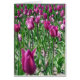 Paarse tulpbloemen tegen vers groen bladeren zijn een verbluffend en levendig gezicht. Paars wordt vaak beschouwd als de kleur van Royalty, en er is een zekere genade tussen deze bloemen. Al die maanden geleden zijn ze zorgvuldig geplant, nu prachtig in hun schoonheid en elegantie. Paars, levendig, kleurrijk en heel mooi. Prachtig voor iedereen die van paarse bloemen houdt en vooral van paarse tulpen. Aanpassen voor je eigen speciale bericht