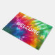 Hou je van stropdas-kleurstof? Viel de jaren 60 en 70 in stijl met deze regenboogkleurige stropdas-kleurstofdoormat! Foto van een echt stropdas-kleurig stuk met de zon die doorschijnt om de kleuren levendig te maken.
