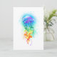 Groot, lichtgevend, artistisch getrokken, heldere kwallen, met lange tentakels op wit, overschilderd met een veelkleurige achtergrond van de waterverf. Regenboogkwallen.
