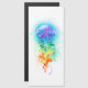 Groot, lichtgevend, artistisch getrokken, heldere kwallen, met lange tentakels op wit, overschilderd met een veelkleurige achtergrond van de waterverf. Regenboogkwallen.