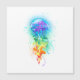 Groot, lichtgevend, artistisch getrokken, heldere kwallen, met lange tentakels op wit, overschilderd met een veelkleurige achtergrond van de waterverf. Regenboogkwallen.