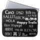 Patroon van globale groeten en salutaties, en gezegden voor reizigers in zwarte en witte kleuren.