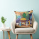 Celebrate the reason for the season with our beautiful nativity scene Christmas pillow. The religious Christmas card features a hand painted nativity scene purple blue pink orange and green. Original artwork by Caroline Bonne Müller