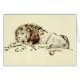 Digitaal verbeterde Rembrandt-inktschets van een regale leeuw die in donker sepia bruin op een roomkleurige achtergrond ligt