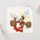 Grappig kerstrendier stripfiguur, er echt Drink en groggy uitzien, na het feest, met nog steeds een glas met champagne op zijn poot en met duim omhoog. Originele Vector Grafische Kunst Copyright BluedarkArt TheChameleonArt.