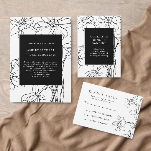 Réponse florale moderne noir et blanc, Mariage