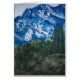 Aménagez la peinture en parc d'aquarelle des montagnes couvertes par neige avec la forêt et les rochers verts. Carte de note