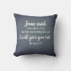 Dit elegante kussen heeft een kleur pallet van blauw om in uw interieur te passen. Het bevat Jezus' eigen woorden die ons eraan herinneren om te rusten. Personaliseer het gemakkelijk als een geschenk met de naam van de persoon die u geeft over wie moet worden herinnerd om te rusten.